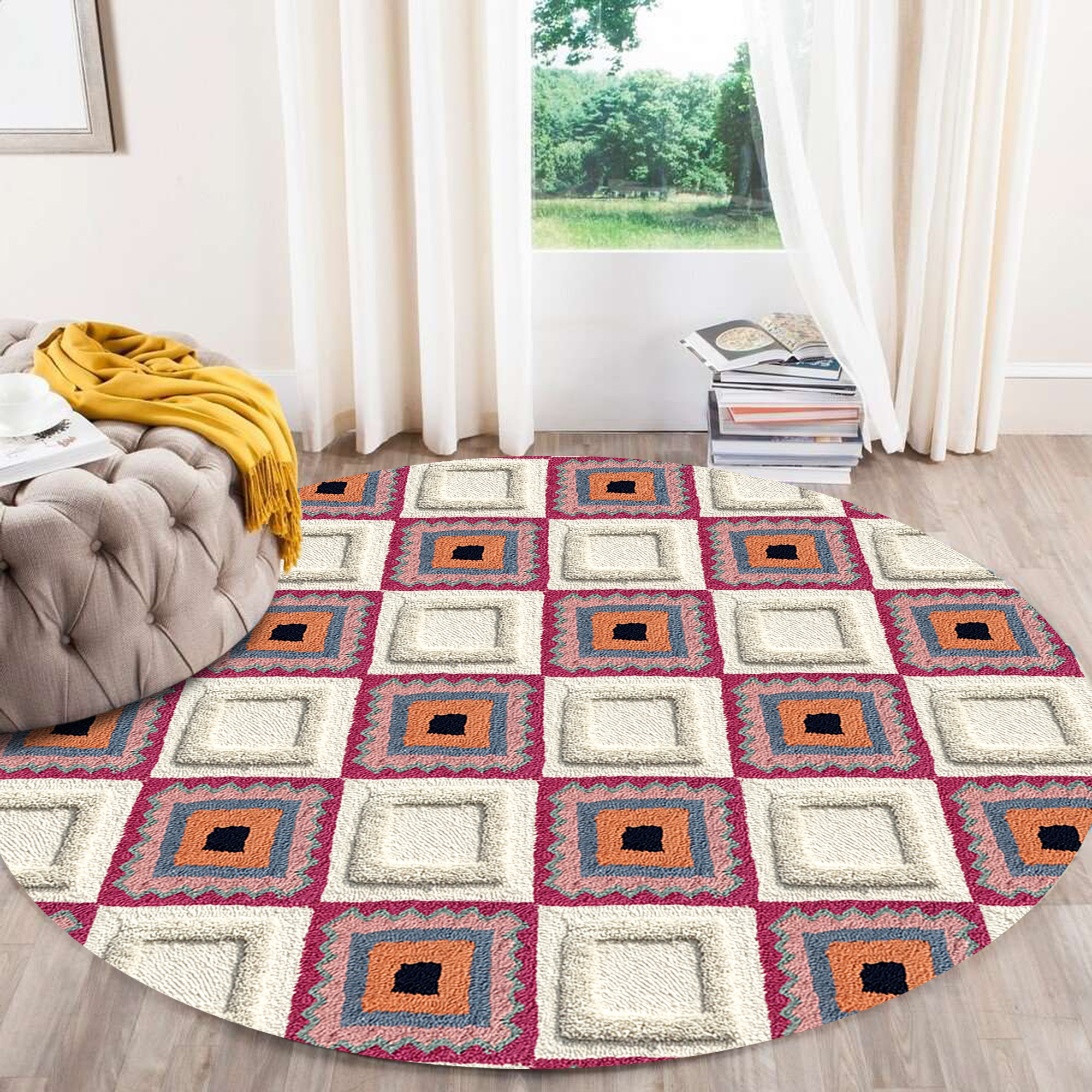 Explore Round Rug, Hand Tufted, 5x5, 6x6, 7x7, 8x8, Multicolor Carpet, Living Room, Circle Carpet