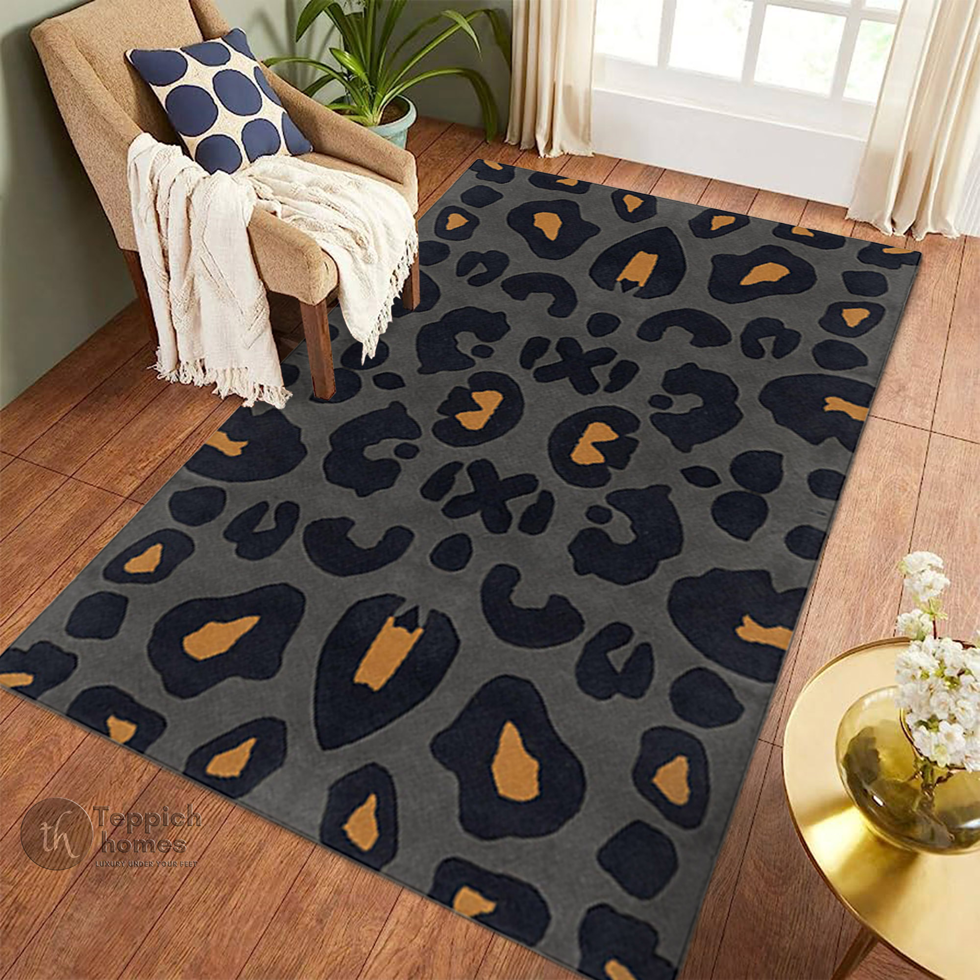 Introducing our stunning Hand Tufted Leopard Black & Gold Wool Rug! Designed to be the centerpiece of any room, this luxurious rug combines contemporary style with a classic touch. Made from high-quality wool, it’s not just a piece of decor; it’s an invitation to indulge in comfort and sophistication. Available in multiple sizes 5x6, 5x8, 8x11, and 11x13 this rug is perfect for your hallway, living room, bedroom, or dining room, making it the versatile addition your home has been waiting for.