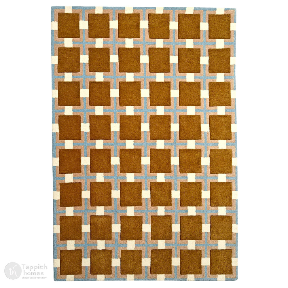 Infuse your home with retro charm using the Mid-Century Retro Square Pattern Wool Rug. This eye-catching rug features a repeating mustard yellow square design with soft pastel blue and ivory accents, evoking timeless mid-century modern style. Hand-tufted from 100% premium wool, it offers a plush texture, long-lasting durability, and natural stain resistance. Perfect for living rooms, dining areas, or home offices, its bold geometric layout adds structure and visual interest to any setting. Ideal for vintage-inspired or eclectic spaces, this 5x8 feet wool rug brings warmth, character, and a unique designer flair to your interior décor.